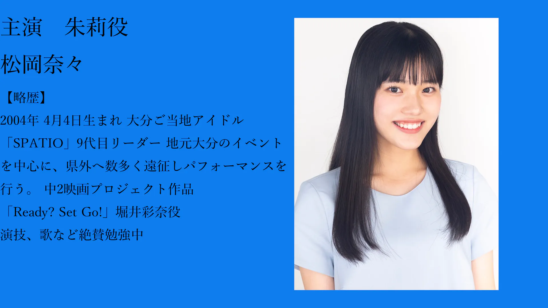 本作品は、つんく♂さんが開催いたしました中2映画プロジェクトにて選ばれたヒロイン、そして監督公募より選ばれた監督がつんく♂さんの指導のもと映画を制作いたします。