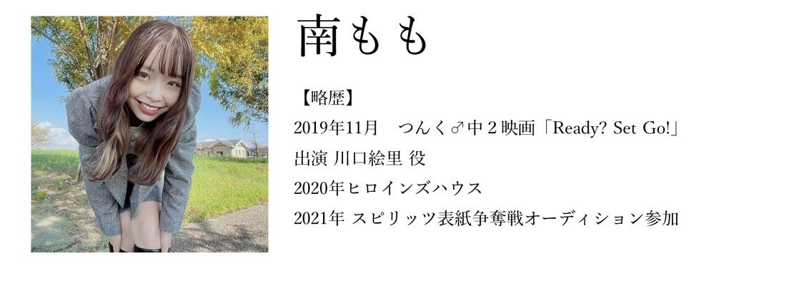 南さんも松岡さんと同じく前回の中2映画プロジェクトの「Ready? Set Go!」にて川口絵里役で出演なさってました。前回は、少し厳しくも優しい主人公をフォローする役柄でした。(個人の感想です。笑)