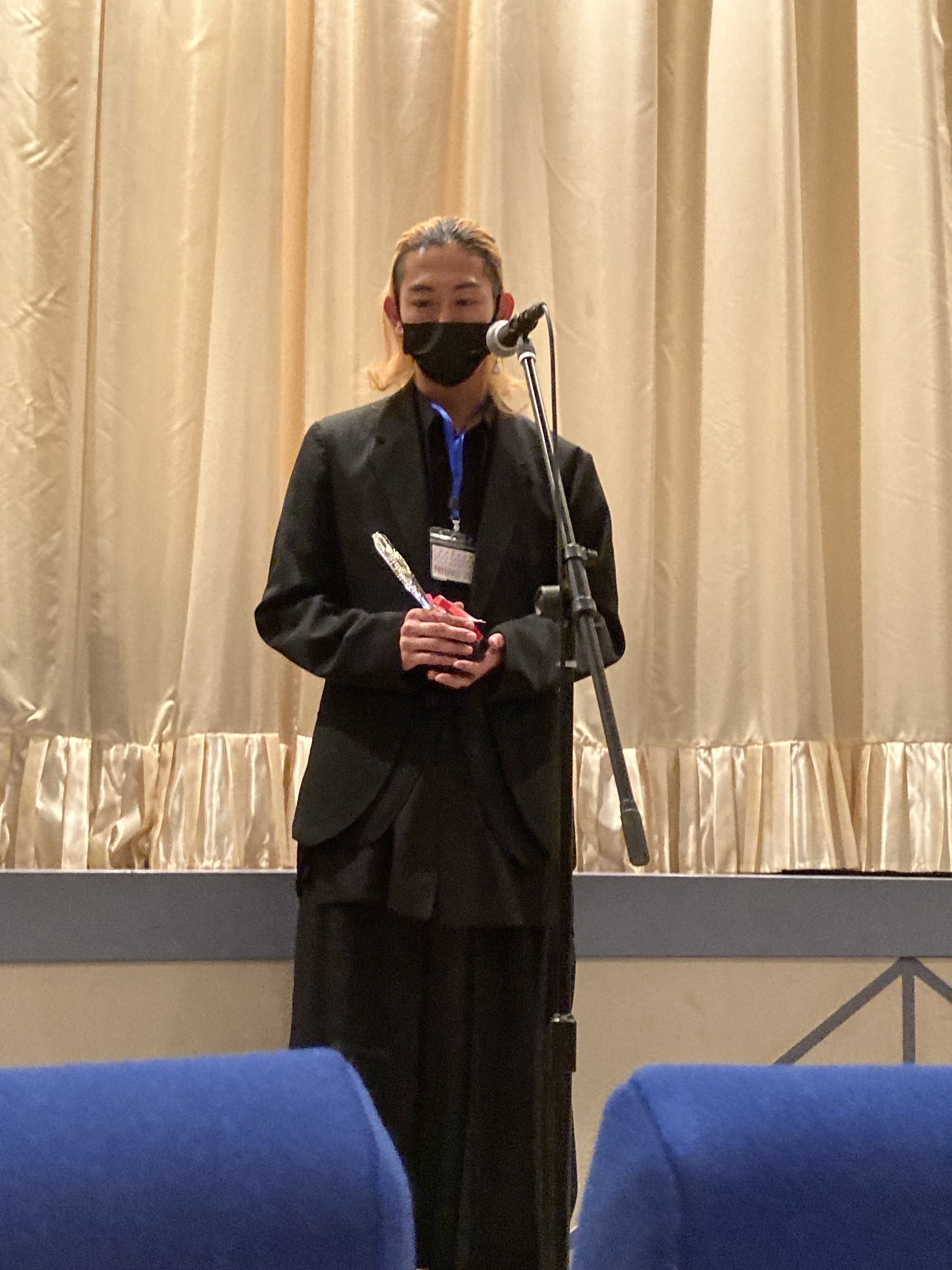 「13年間映画を作らせて頂いて、小学生の頃からずっと映画監督になるのが夢で、こうやって賞を頂いて高校を卒業し大人になって商業の方と比べられたりで戦って来れてなかったで、大変嬉しいです。ありがとうございました。」