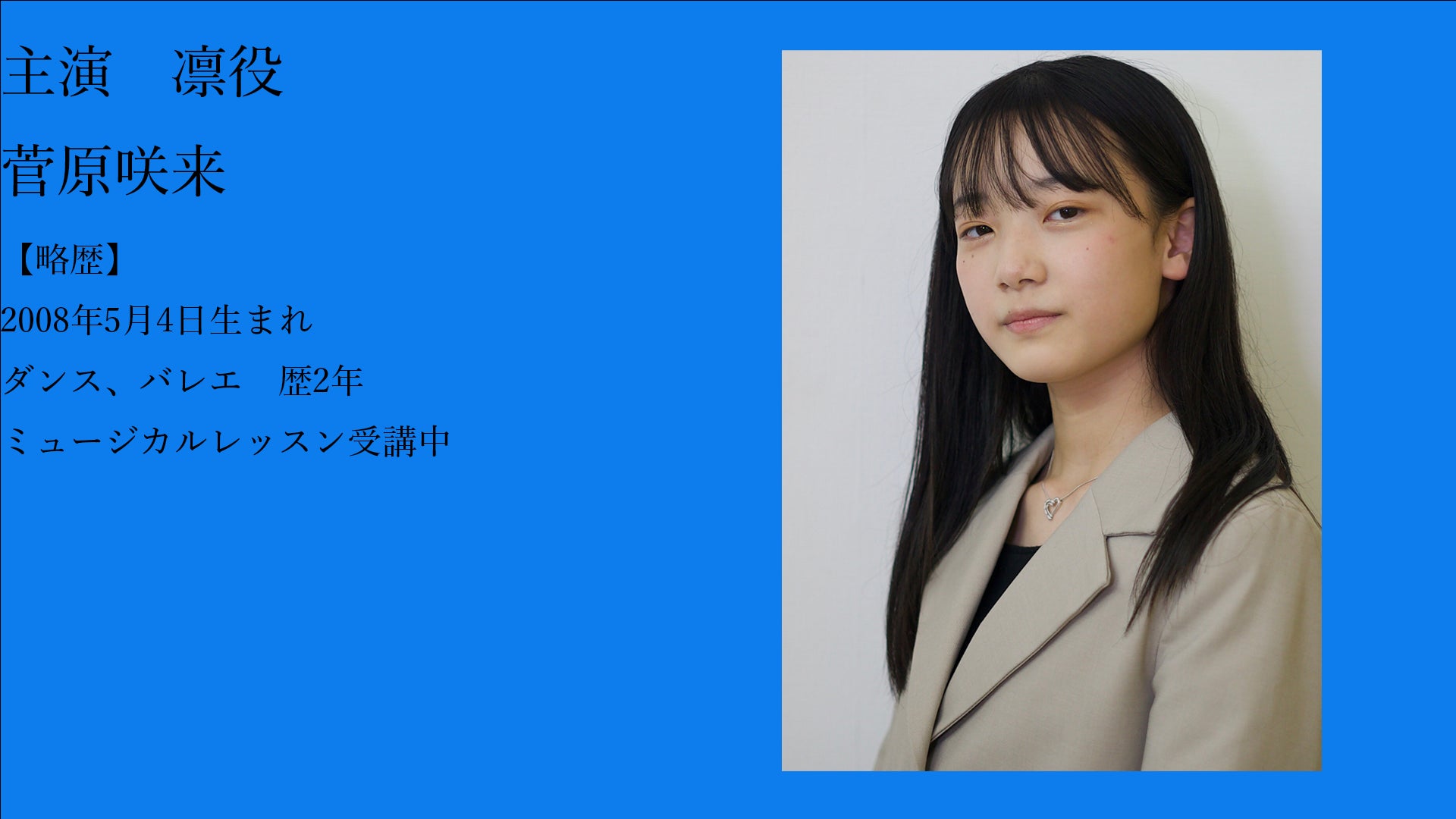 お疲れ様です。お世話になっております監督の秋葉です。キャスト紹介第2回目は二人目の主人公凛役の菅原咲来さんです!【菅原さんを選んだ理由】これは、時を遡ること数年前です。映画はよく見ていたのですが、好きな女優さんは当時いなかったのですが、祖母の家にパソコンがありそれで映画の予告を見ていたら「渇き。」という映画に出会いました。その予告編では、謎の役所広司さん演じる藤島の娘の藤島加奈子役の小松菜奈さんが映っていて度肝を抜かれました。それから、舞台挨拶で小松菜奈さんを実際に拝見したときにもう震え上がりました。そして、今年ヒロインオーディションで多くの方を見ていたとき、菅原さんが現れました。なんということだ、数年前の小松菜奈さんとおんなじオーラを出している子がいるじゃないか?!と驚きました。もう、菅原さんを一番活かせる映画を撮るしかない!と思わせていただきました。まだ、中学一年生できっとこんなにガラの悪い監督の作品に出るのなんて嫌だと思ってしまっても無理はありません。しかし、菅原さん、そして松岡さん、秋庭さん、南さんと贅沢すぎるほどに素晴らしいキャストが集まったからには、多くの方に!そして多くの映画監督に!この素敵な俳優たちと共に作った映画を見せつけてやりたいと思っています!【撮影に向けて】菅原さんが演じる凛という役はある理由から、突然姿を消し月と人口と人間の寿命を半分にします。中学生だからこそ思いつく凛なりの社会へのメッセージがあります。菅原さんには、中学生のアンバランスさと強さを同時に演技してもらいますのでとてつもなく難しいと思います。本作品は全員演技が難しいですが笑本当に菅原さんの持っているセンスや雰囲気すべて活かせるよう精進して参ります。よろしくお願いいたします!!【次回は幽霊の咲を演じる秋庭琴乃さん特集です!】