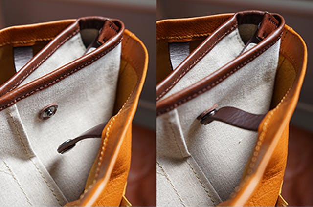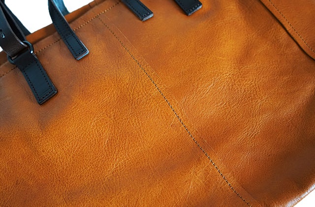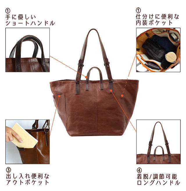 - ②本格イタリアンレザーを使用し、重くなりがちなトートバッグを日本の職人技で軽量化を実現