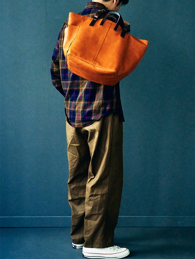レザーユーティリティートートは、革の表情や質感を生かすため、機能性をマイナス(引き算)していき、出来るだけシンプルで無駄のないデザインに仕上げました。