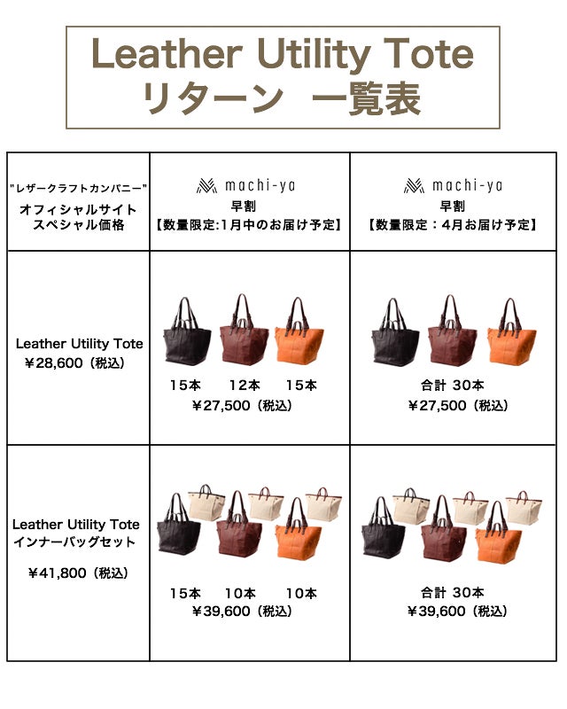 今回特別に、本来なら別売りのインナーバッグをユーティリティートートとのセットを数量限定でご用意し、machiya価格でご提供いたします。