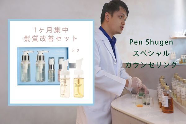 コスメ開発者 Pen shugen代表 彭倏耕(ペンシュゲン)氏のお話が直接聞けるカウンセリング付きリターンです。彭倏耕(ペンシュゲン)氏に髪質相談を参考にしながら、1ヶ月髪質改善にトライしてみてください!