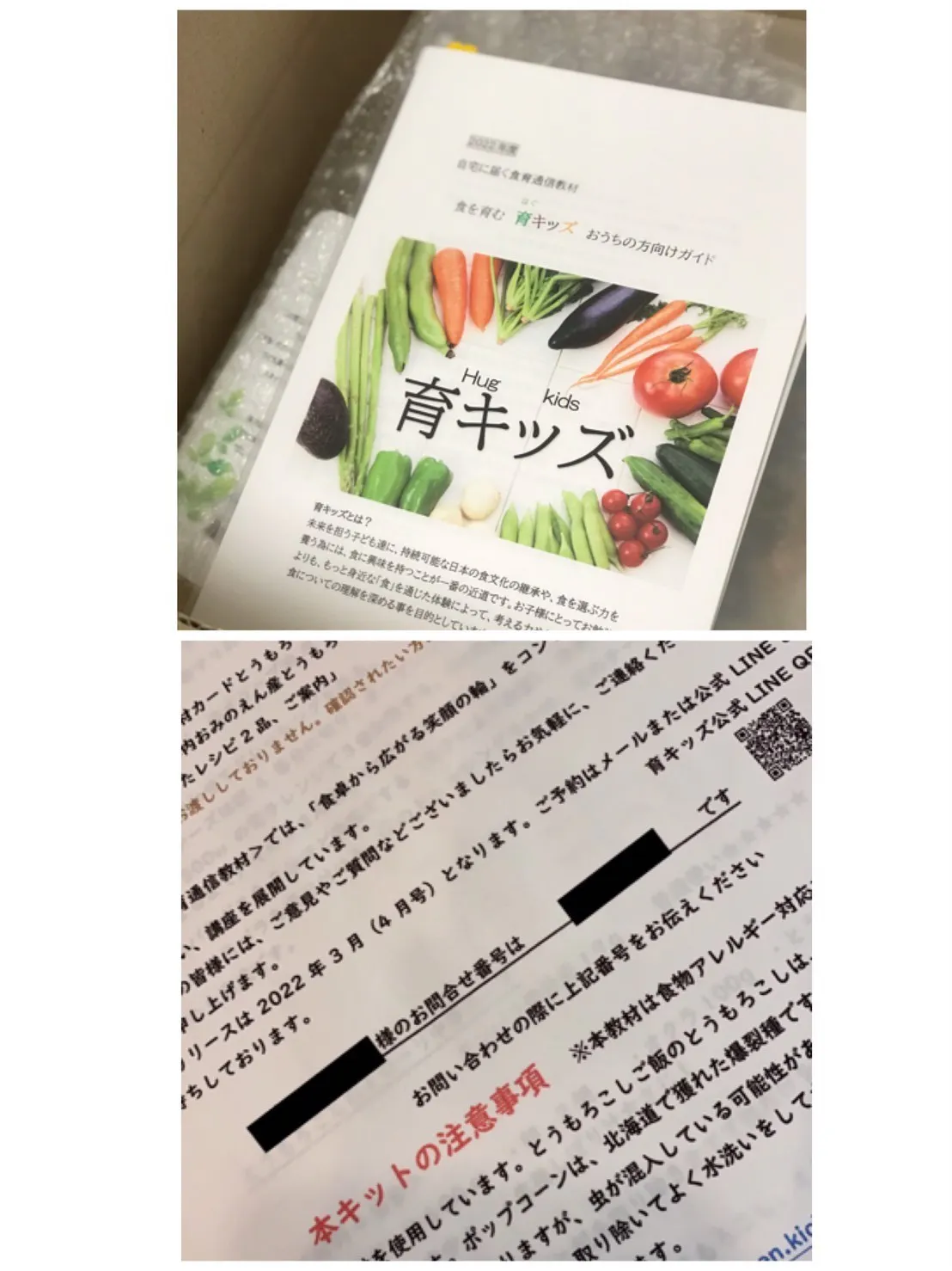 年に6回(2か月に一度)お料理教材や実験教材など、食を育む教材が自宅に届くサービスです。