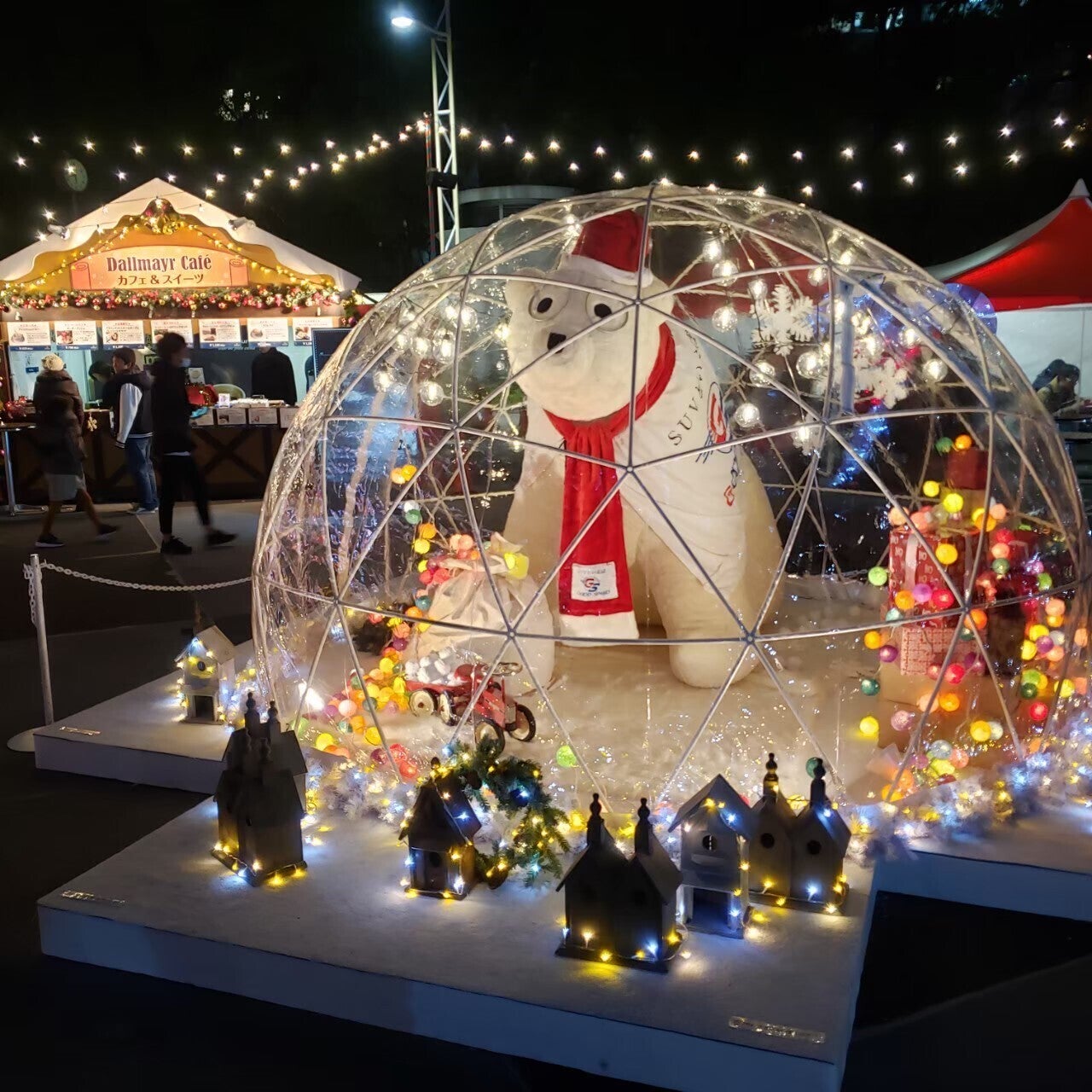 例年、会場では大きなもみの木のツリーやサンタさんとのグリーティング、メリーゴーラウンドなどきらびやかなイルミネーションと一緒に、グリューワインやローストチキンなどクリスマスにちなんだ料理を楽しんでいただいておりました。