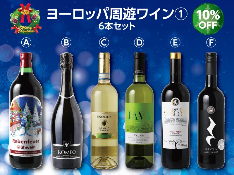 クリスマスマーケットが開催されているヨーロッパを周遊できるワインの6本セットです。デイリーワインとしても飲みやすいラインナップです。