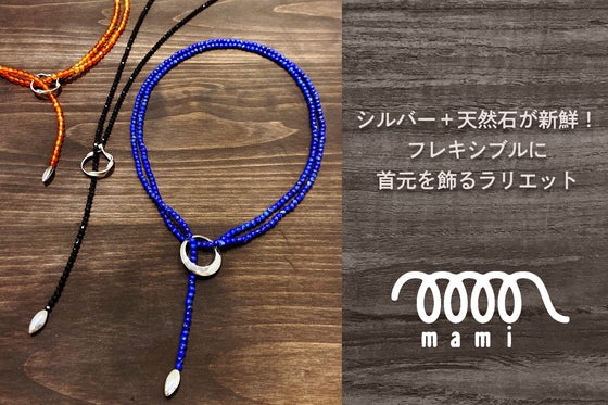 ジュエリーブランド[mami]の新作はシルバーと天然石を組み合わせた新しいラリエットです。2重にしてチョーカー風に、1重にしてロングネックレスにとフレキシブルに...