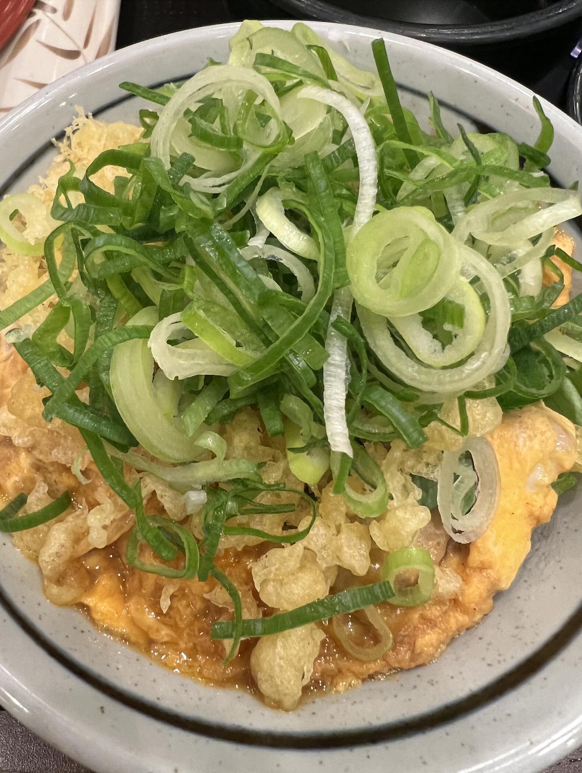TOPの写真は丸亀製麺所の親子丼。天かす少々+ネギたっぷりがお好み。430円は破格でしょ!うどんより親子丼の方を選ぶのは、アリなのか、ナシなのか?笑