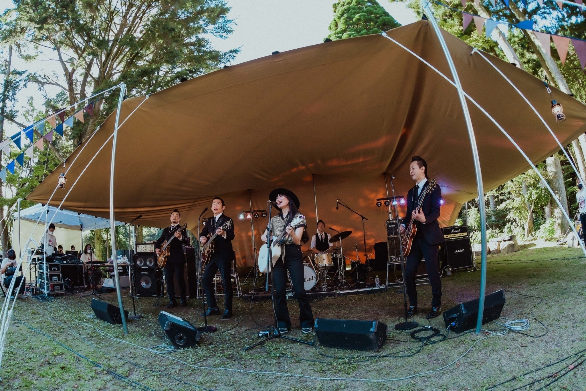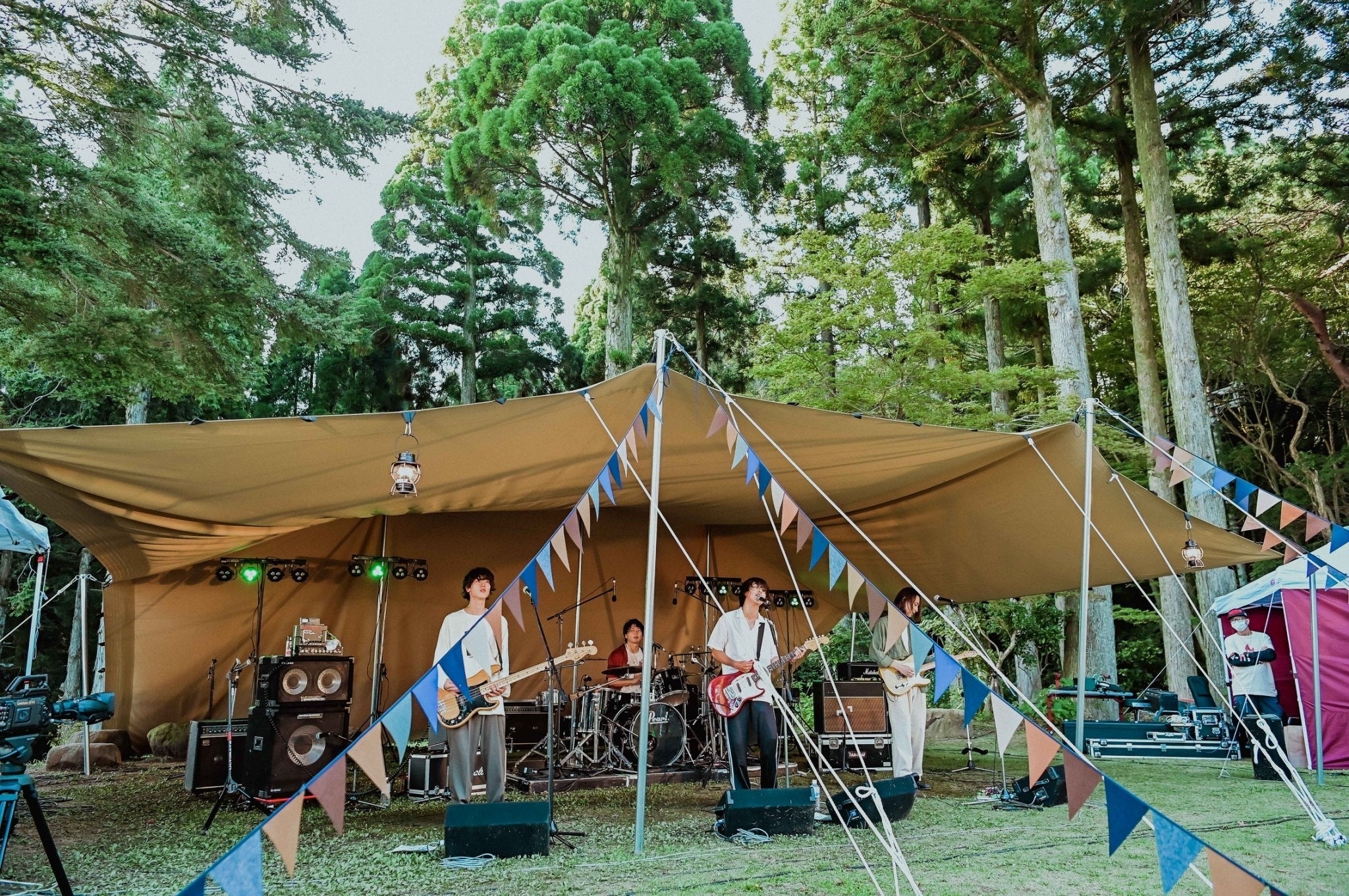ライブハウス界隈で沸々と話題になりつつあるベルマインツやCOWCITY CLUB BAND、WANG GUNG BAND、Laura Day Romance。アコースティックギター1本で貫禄ある音楽を奏でて魅せてくれた下津光史(踊ってばかりの国)やグッとくるハーモニーを木々の中に響かせてくれたHAND DRIP。森の中に素敵なマリンバの音を奏でてくれたFlying Mallets。いつもと変わらぬロックンロールビートを鳴らしたTHE NEATBEATSやKING BROTHERS。最後は焚火ステージでやさしいうたを歌う今村モータース。オープニングアクトにはそれぞれ、神戸市立外国語大学と神戸大学の軽音団体バンドが出演し、来場者も出演者もスタッフも、立場を越えて音楽を自然の中で満喫した1日となりました。