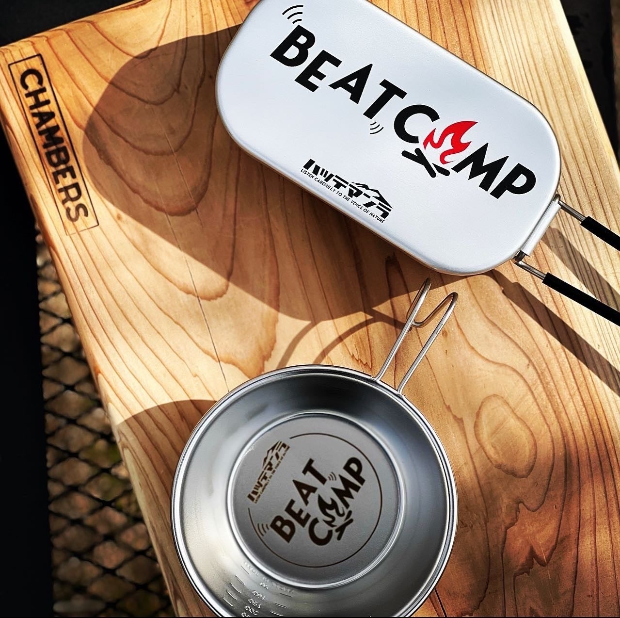 ※写真はInstagramにも掲載しましたが、今回の返礼品の中から「カッティングボード(薪SHOP CHAMBERS)」「シェラカップ(x azuroy x)」「メスティン」です。今回、BEATCAMP / ハッテマンラとのコラボを快諾いただいた皆様です。支援金を募るということに賛同いただき、支援金設定をさせていただきましたので、ご了承いただけますと幸いです。どれもかっこいい!!!