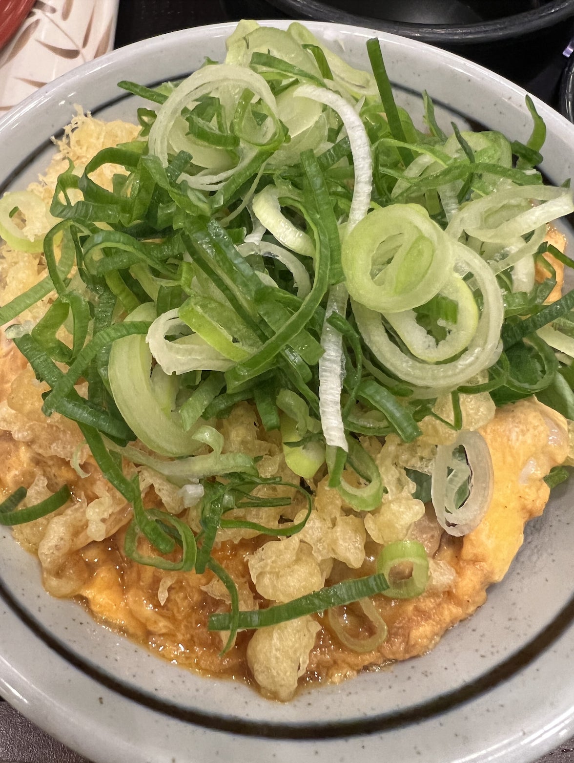 TOPの写真は丸亀製麺所の親子丼。天かす少々+ネギたっぷりがお好み。430円は破格でしょ!うどんより親子丼の方を選ぶのは、アリなのか、ナシなのか?笑