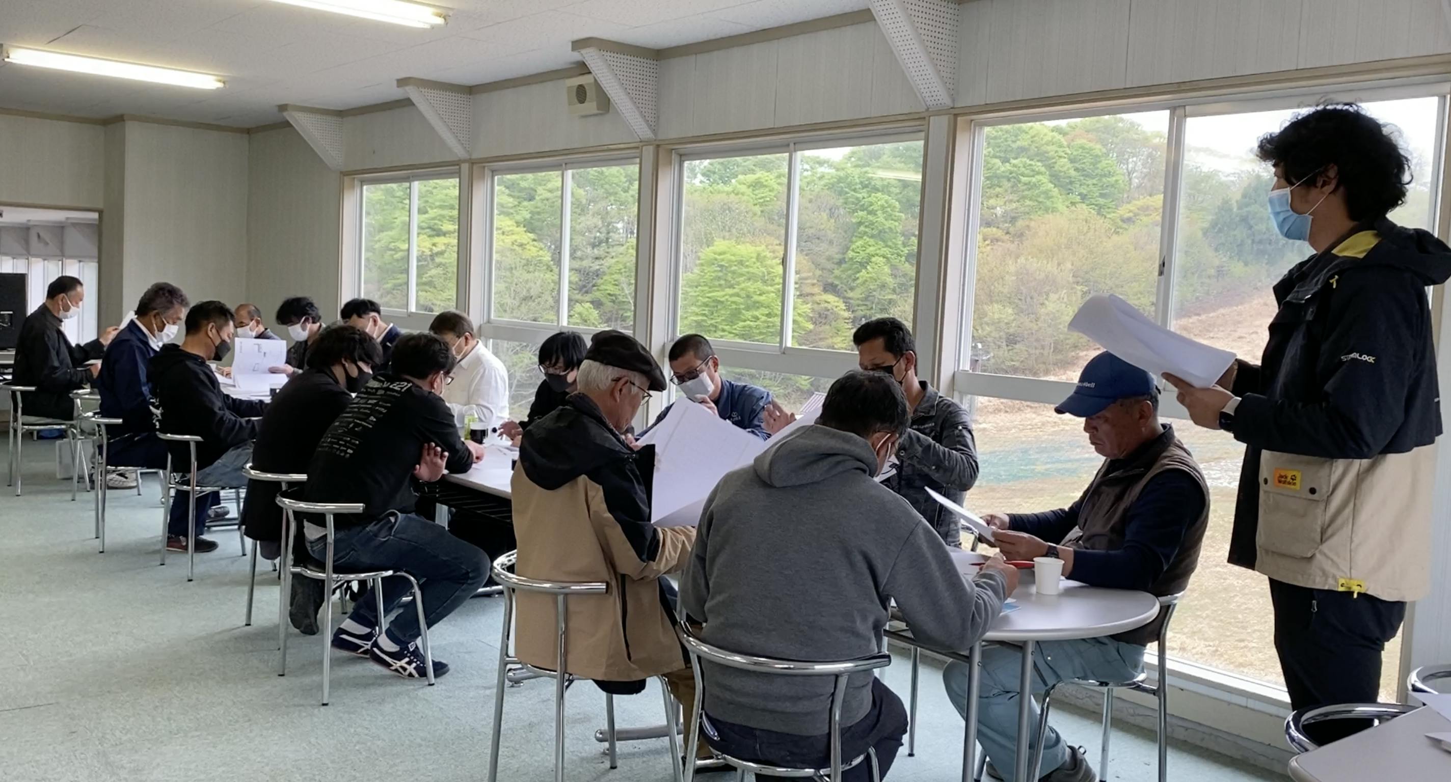 これらの方々にお集まりいただき、全体の工程の話から、コンテナハウスの降ろし方など、各所ごとに打ち合わせをしていただきつつ、南出が各所に意思表示をして決定まで持ち込み、、、という、あっという間の4時間!