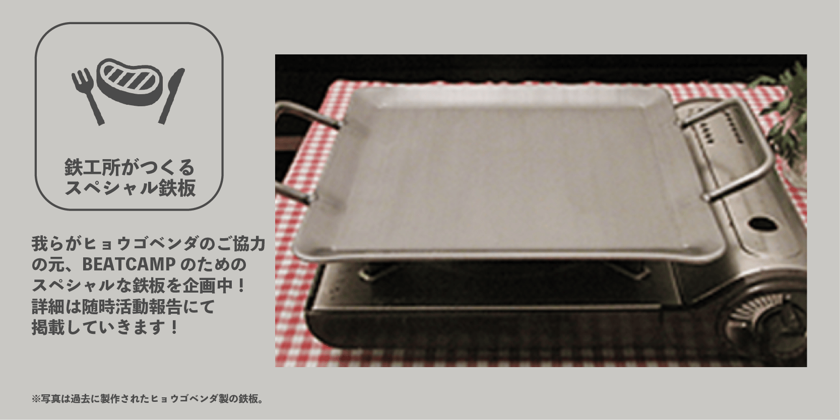 いつもお世話になっている兵庫ベンダ工業に今回もお世話になりまくってのリターン品をご用意いただきました。完全BEATCAMPオリジナル鉄板です。