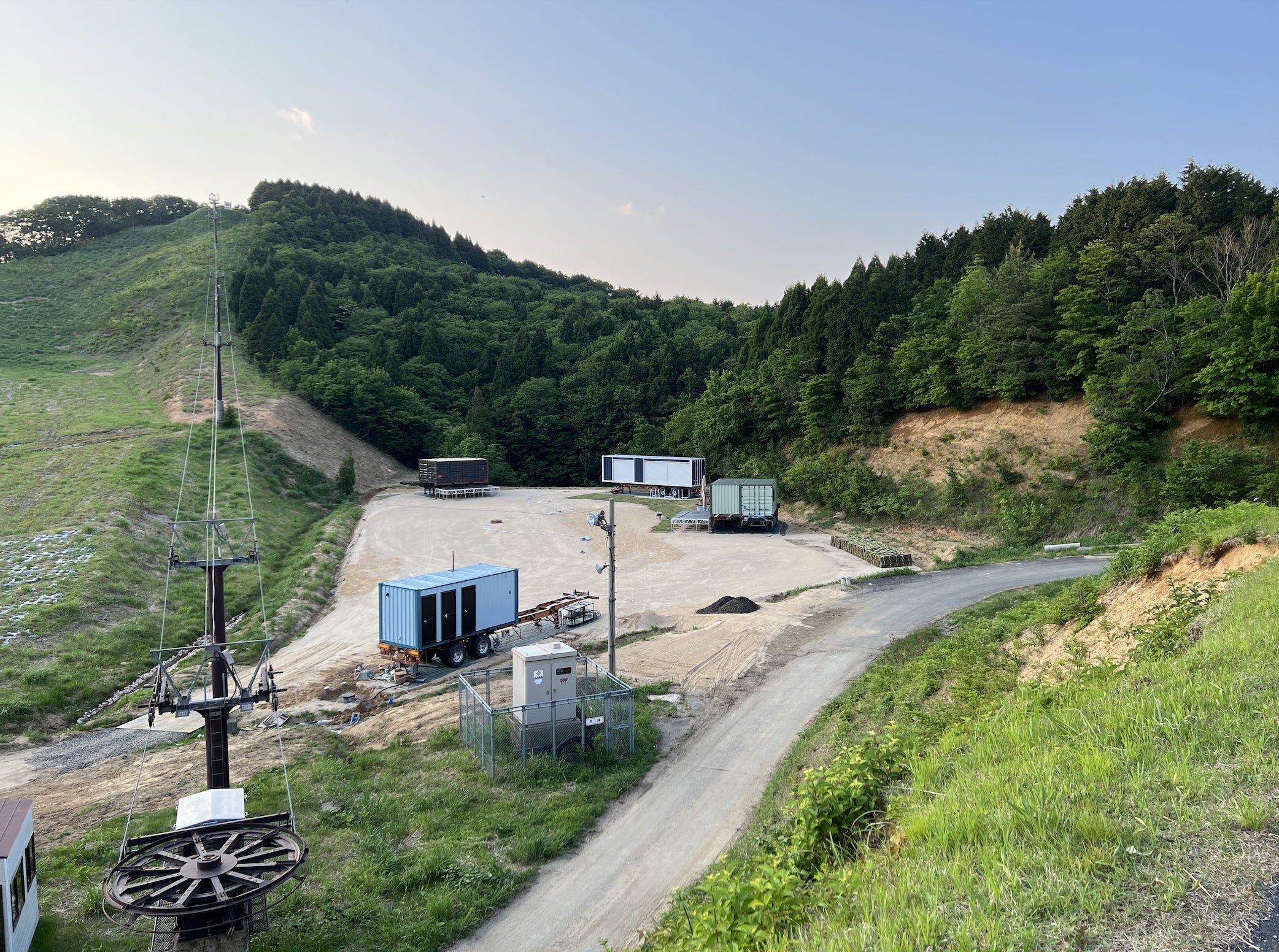 作業車両の進入もそろそろ終わるかな?ということで、無数の轍を平にするため、Yasaka-Worksの吉岡さんチームがやって来てくれて、ならしてくれました。この数日、全然雨が降ってないので乾ッカラの土なのですが、今日、午後から降りそうなので、それまでになんとか1枚でも多く、貼れるといいのですが。。。