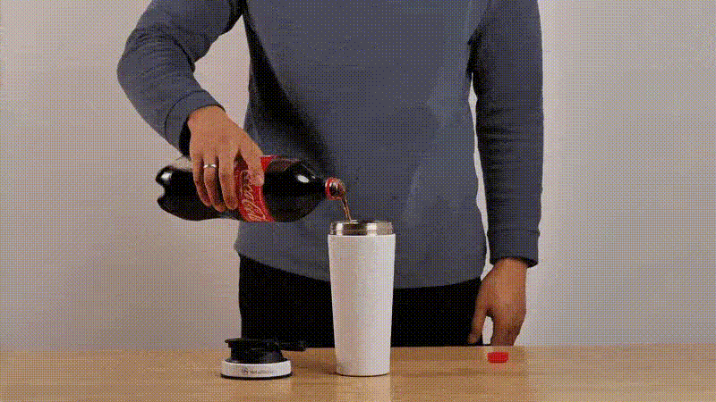 炭酸飲料を入れても圧力によって、フタが空かない構造になっています。