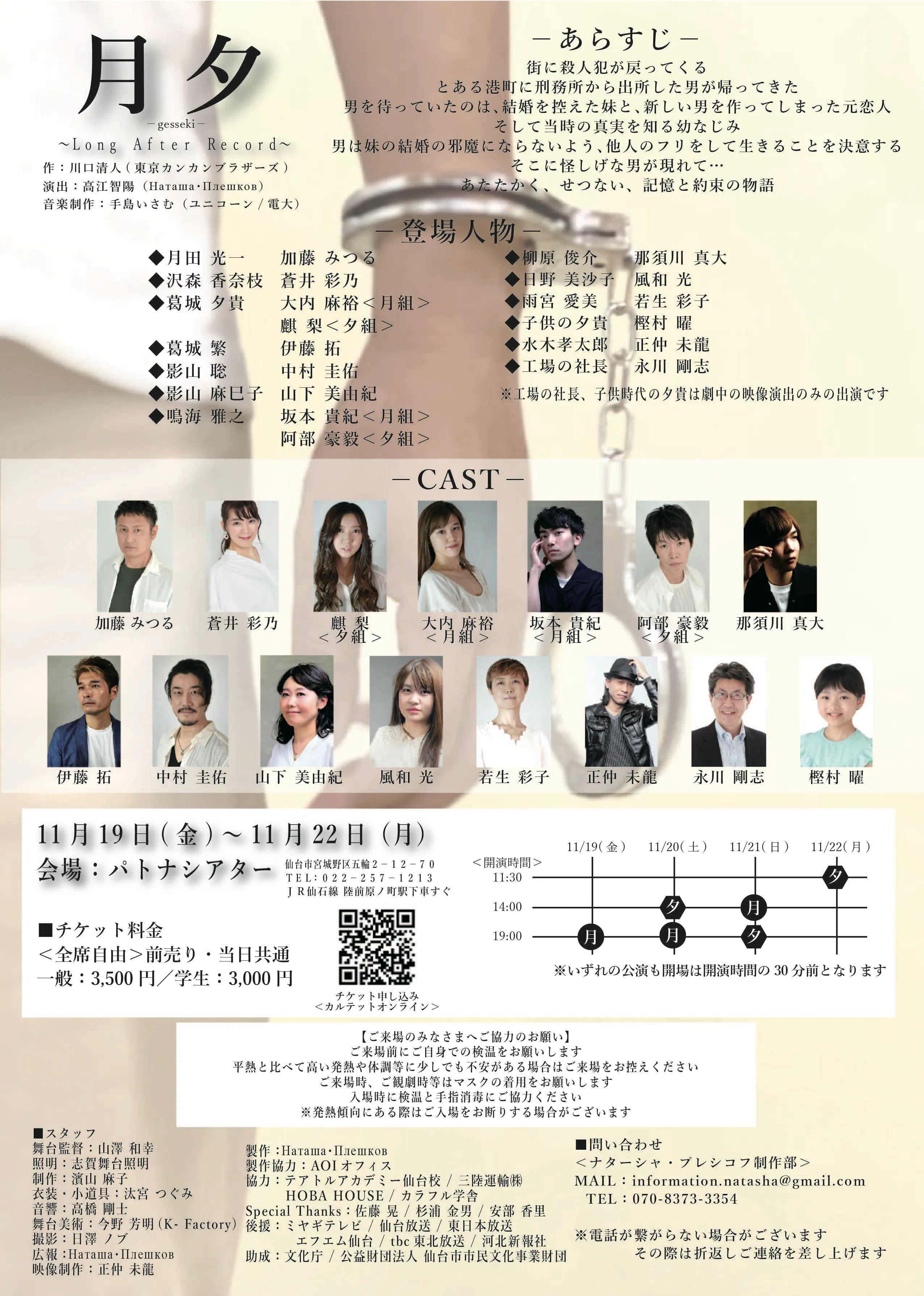 11月21日(日) ①月組 14:00~ ②夕組 19:00~