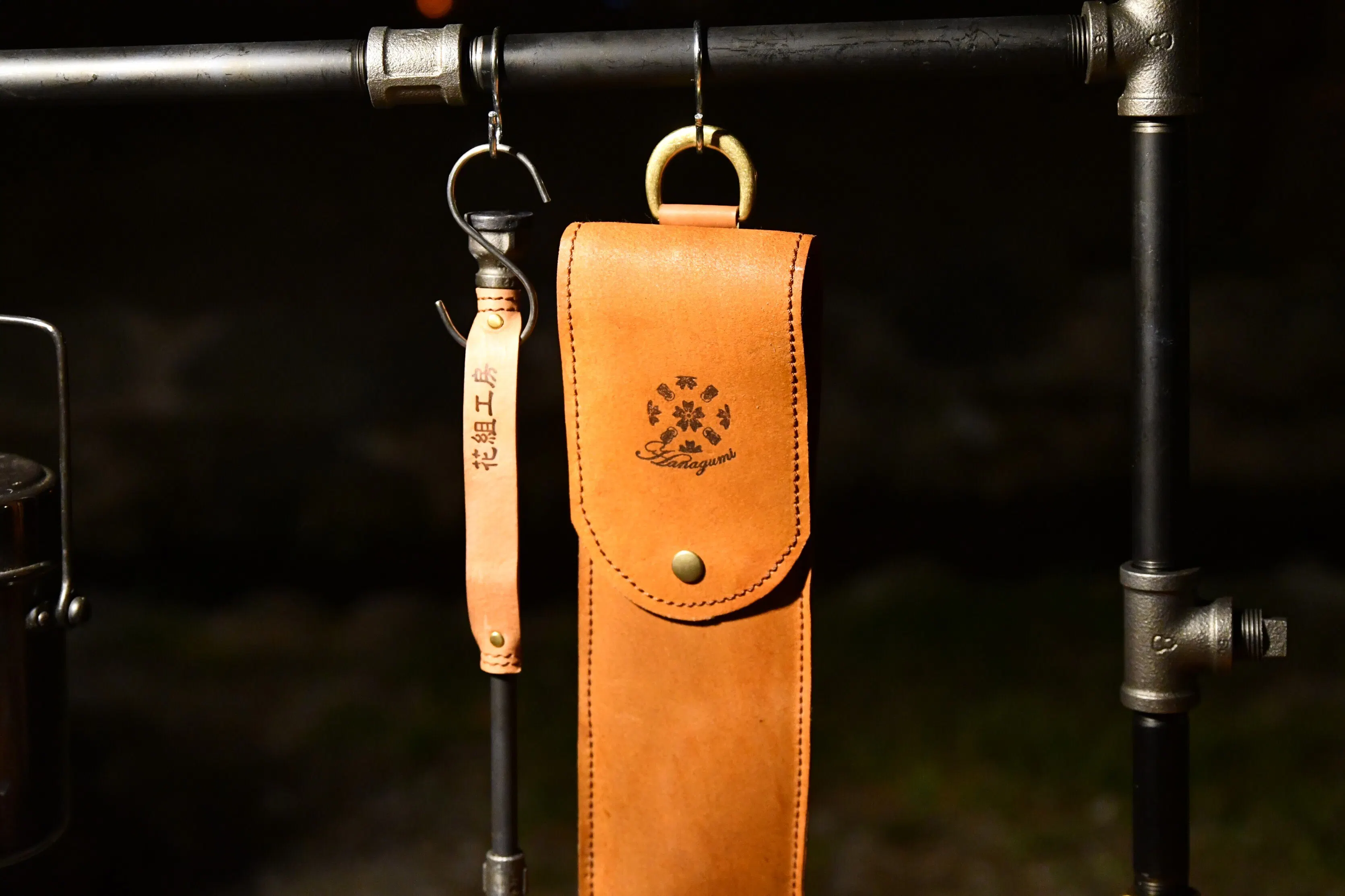 吊り手部分には耐久性が高いヌメ革を使用、着色には皮革専用塗料を使用し仕上げにウレタン樹脂の