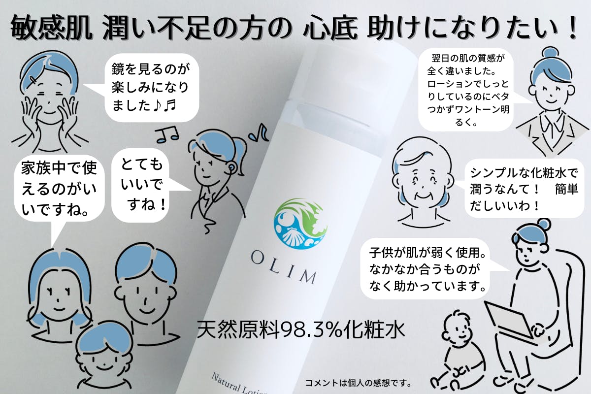そういった皆様へ、ぜひOLIMの化粧水をお使いいただきたいのです!