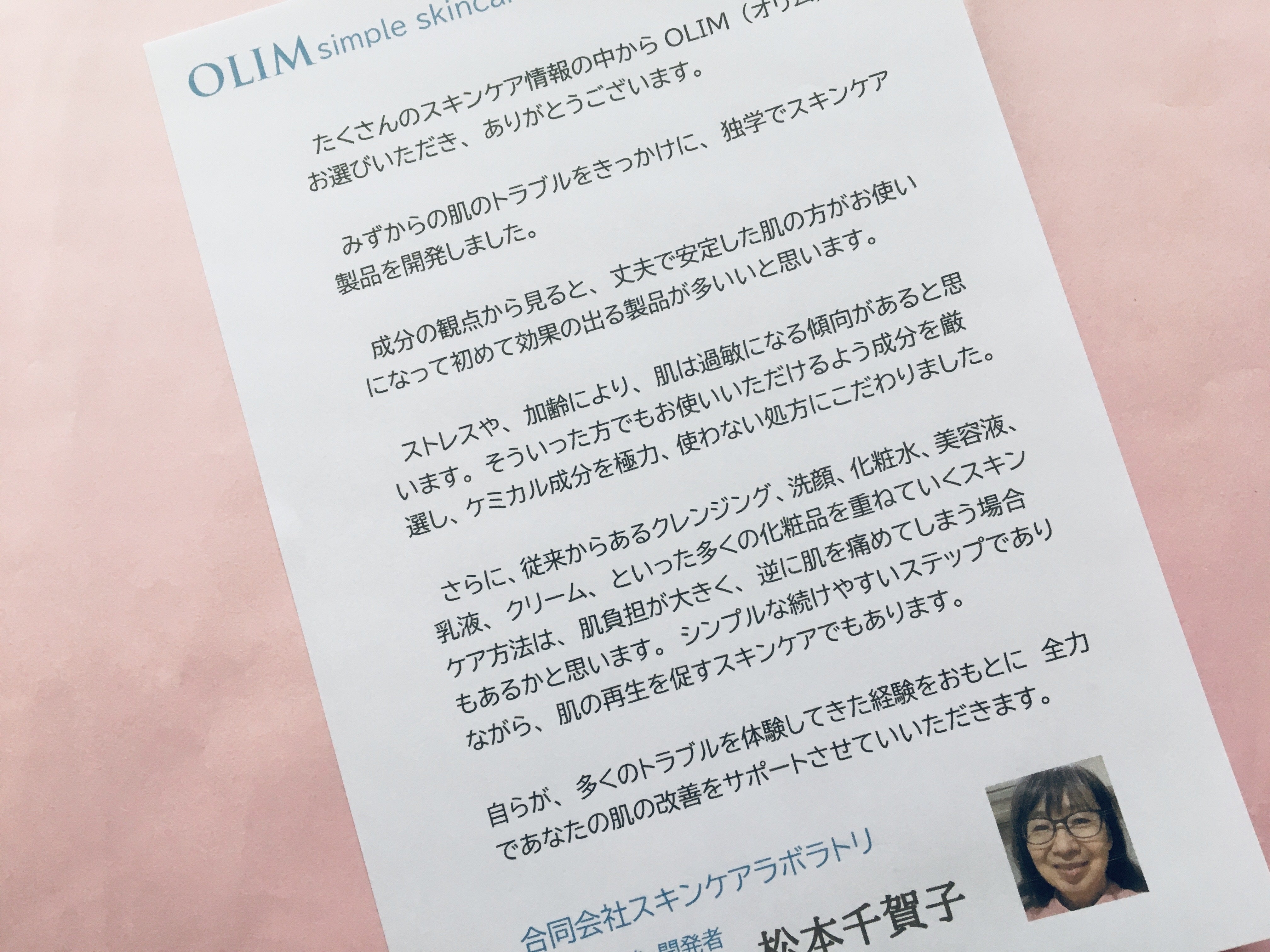 はじめまして、スキンケアラボラトリの松本千賀子です。
