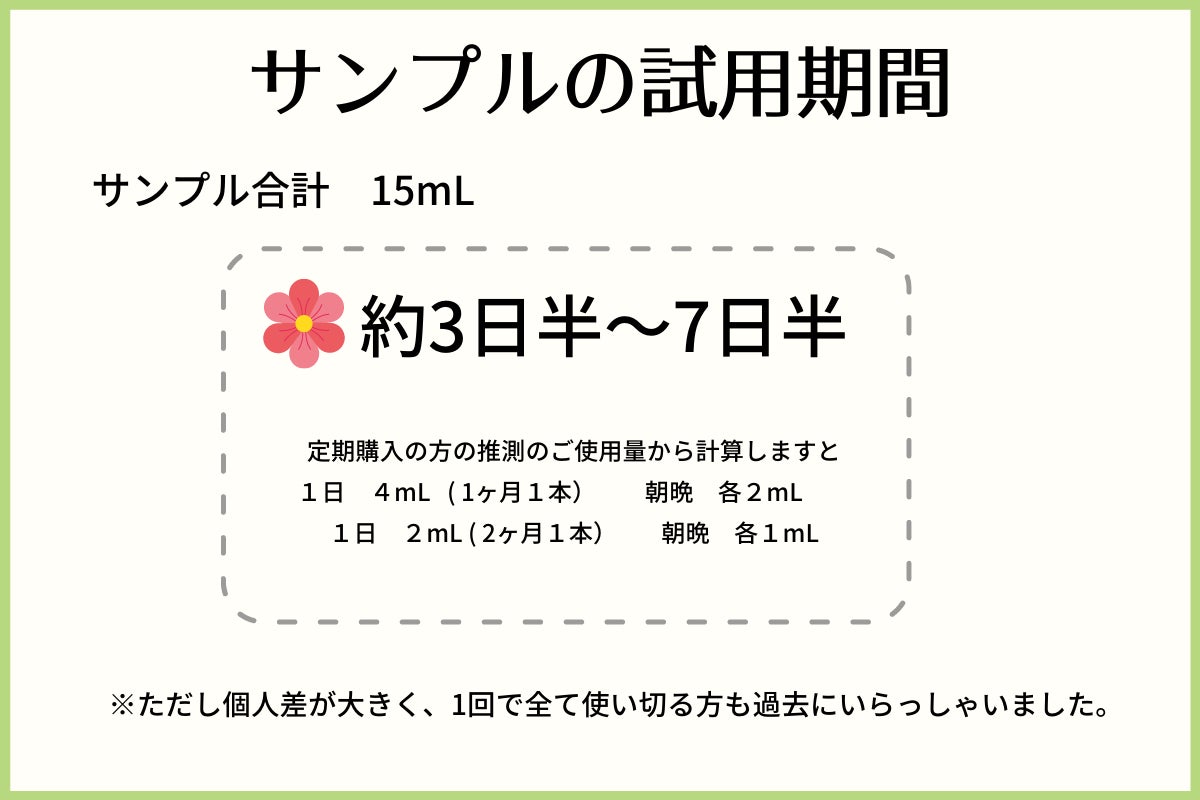 3日半~7日半 お試しいただけます。