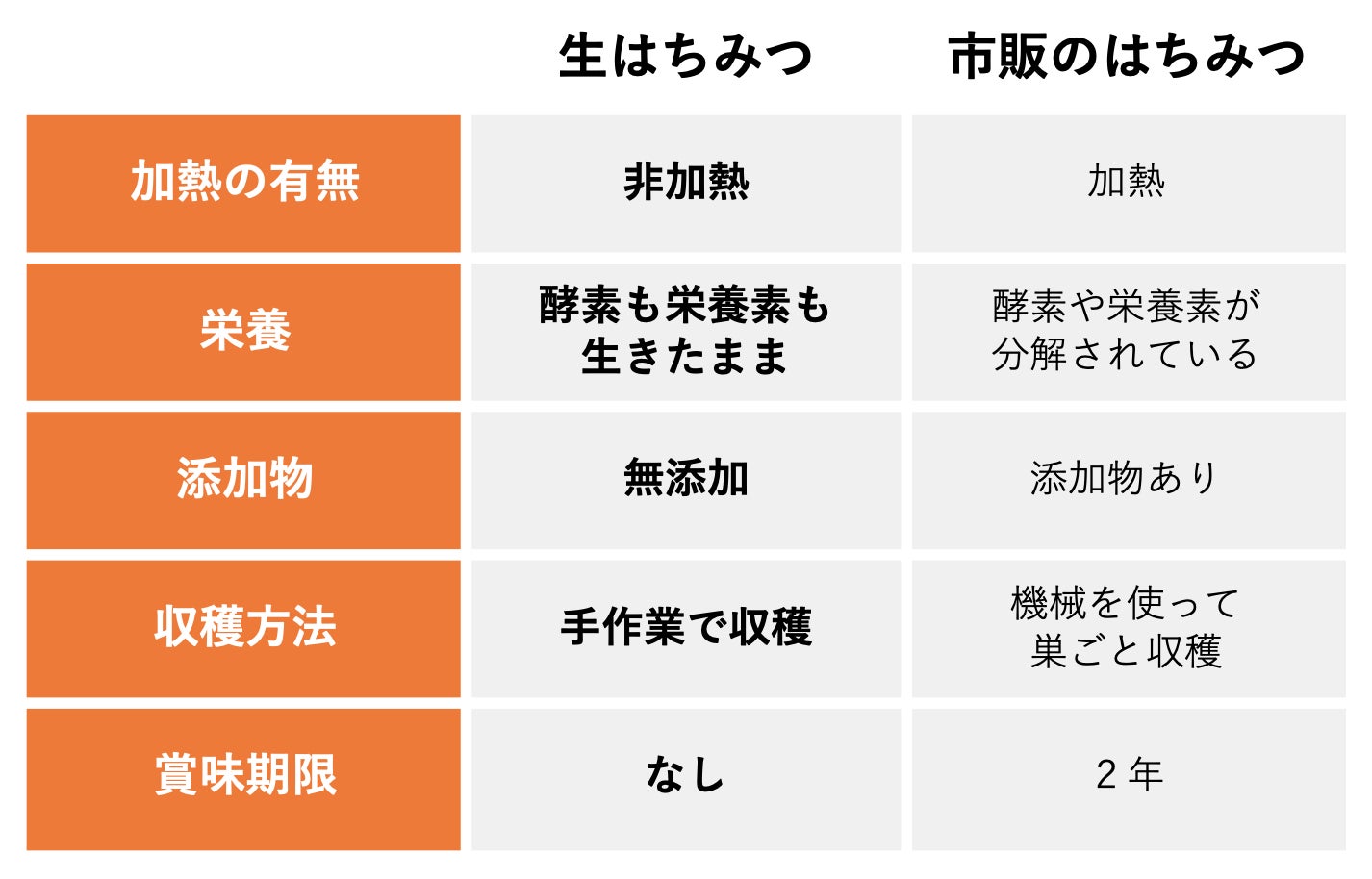 普段皆さんがスーパーで見かけるはちみつは、加熱処理が行われています。加熱する理由は、生産効率をよくしてコストを落とすためなのです。加熱をすると、本来のはちみつの風味や栄養分など失われてしまいます。
