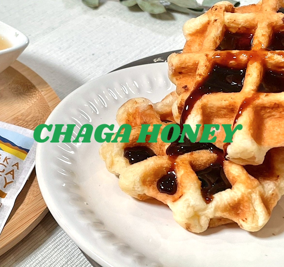 アラスカ産、非加熱・非加糖・酵素が生きたままの「生はちみつ」と近年高い健康効果が明らかになっている貴重なキノコ「チャーガ」を混ぜたチャーガはちみつ。