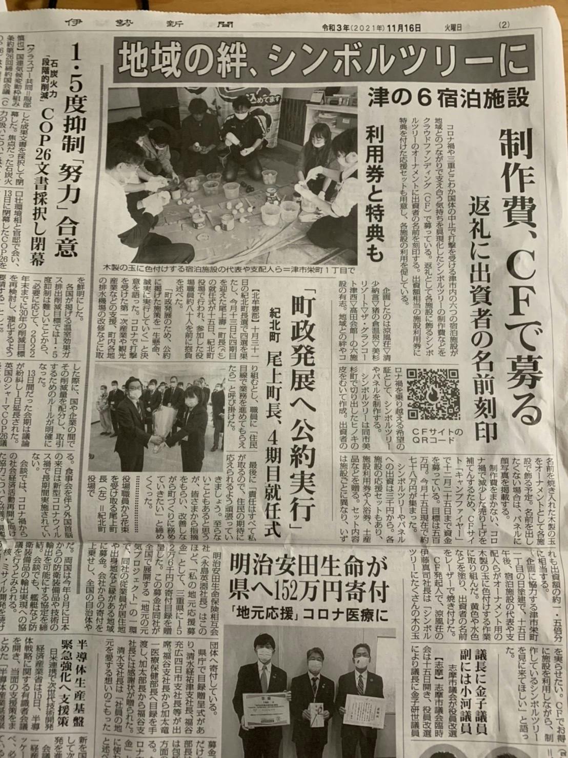 コロナ禍の中、踏ん張ってきた三重県津市の宿泊業界ですが、国体の中止によりモチベーションを失い、心が折れかけました。しかし明日への希望を持って皆様と明るい未来を目指したいと希望のシンボルツリーを企画致しました。皆様との絆となり、ずっと残り、ずっと繋がっていくものです。一緒に彩って頂けますと幸いです。