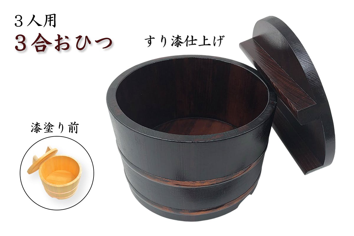 ※漆塗りおひつの水分吸収は白木の半分程度になると言われております。