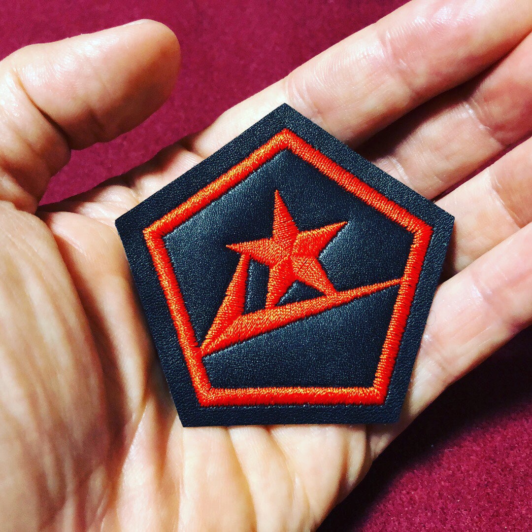 このロゴは星と同色部分を生地に刺繍しており、上記画像で言えば黒の生地にすべての赤色部分を刺繍にしています。