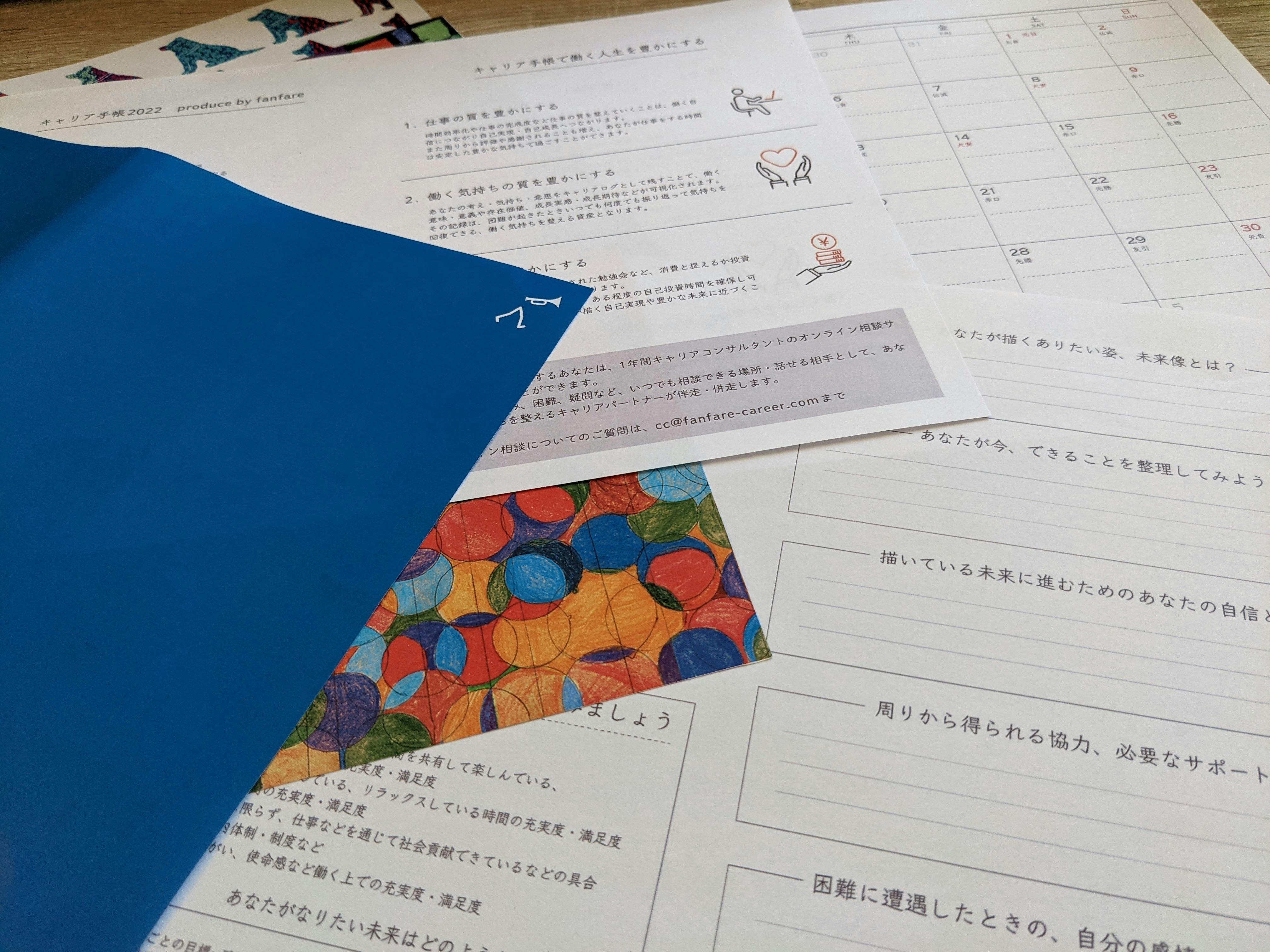 2022年版は1月始まり、手帳カバーデザインは全4種作成を予定しています。キャリア手帳購入者には、キャリアコンサルタントが1年間オンライン相談を通じて、健やかに豊かなキャリアを築けるよう伴走・併走するサポート付き!