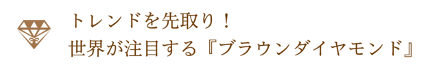 それは、『ブラウンダイヤモンド』。エレガントな色相から、「シャンパン」や「コニャック」、また「チョコレート」などに例えられるダイヤモンドです。