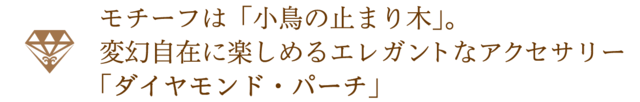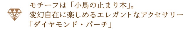 パーチ(perch)とは、止まり木のこと。この一粒のダイヤモンドは、小鳥が羽を休める止まり木のように、変幻自在にオシャレを楽しめるアイテムなのです。