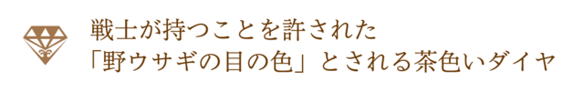 トップのバラモン(司祭や統治者)は白や無色のダイヤモンド。 その次のクシャトリア(戦士や地主)たちが携帯を許されたのが、「野ウサギの目の色」とされる茶色のダイヤだったのです。