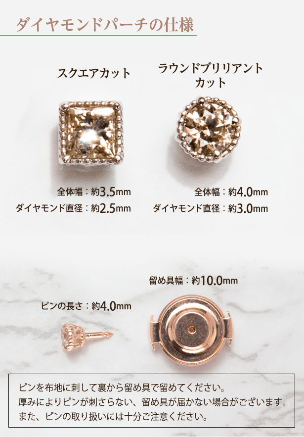 ・使用感・サイズ感等に関する返品・返金はお受けいたしかねます。 ・一つ一つ制作していますので、クオリティに多少の違いがあります ・開発中の製品につきましては、デザイン・仕様が一部変更になる可能性もございます。 ・ご注文状況、使用部材の供給状況、製造工程上の都合等により出荷時期が遅れる場合があります。 ・天然のダイヤモンドを使用いたしますので、石によって多少違ってみえることがあります。