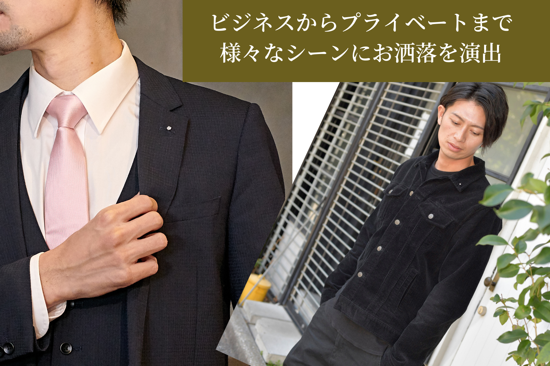 ②スーツスタイルは遊び心があるエレガントさ、私服は品があるカジュアルさを演出