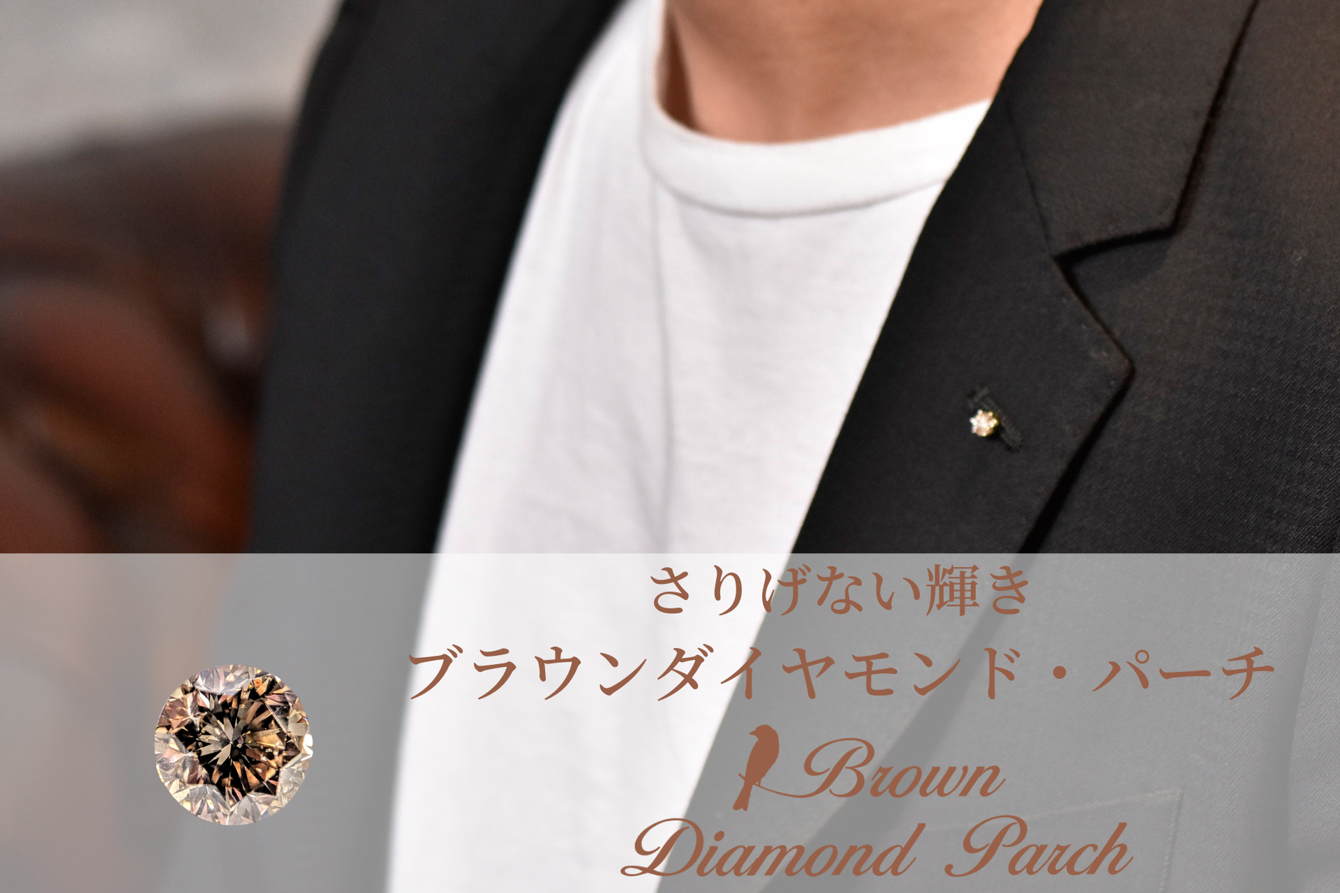 長い歴史が物語るエレガントな雰囲気を纏った一粒のブラウンダイヤモンド。上質を知る男性にこそ身につけて欲しいそのジュエリーは、「ダイヤモンド・パーチ」と言います。