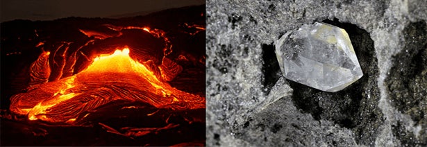 その後、繰り返される火山活動により地表近くまで押し上げられ、さらに長い年月をかけて侵食されて川や海などに流れ出たものが、現在の「ダイヤモンド」です。
