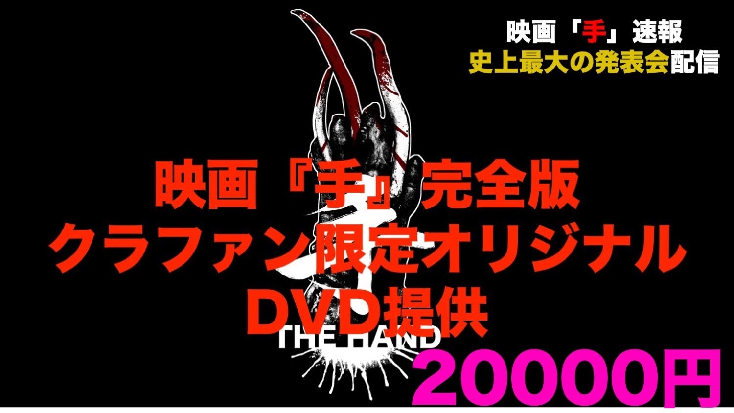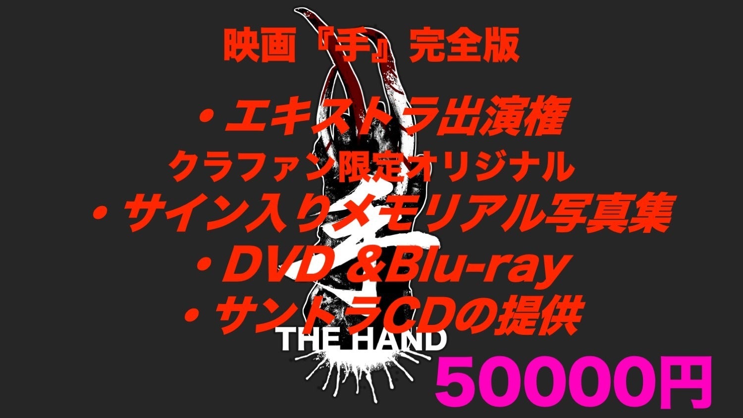 ※打ち上げ参加権(前バージョン)の造形物の提供を映画『手』完全版DVDの提供に変更することも可能でございます。