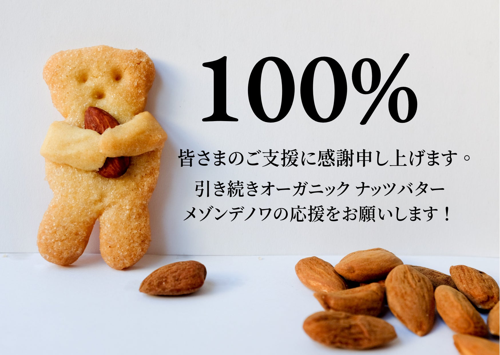 皆さまのご支援により、初日に目標達成いたしましたことをご報告申し上げます。地球にも体にも優しいオーガニックナッツバターを日本で広めるこのプロジェクトに、ご賛同いただきありがとうございます。12月の美味しいリターンのお届けを楽しみにしていてくださいね!リターンはまだまだご用意がございますので、このプロジェクトにご興味を持っていただけそうなご友人、お知り合いの方にも共有いただけると嬉しいです!引き続きよろしくお願いいたします。株式会社メイベルジャパン Maison des Noix