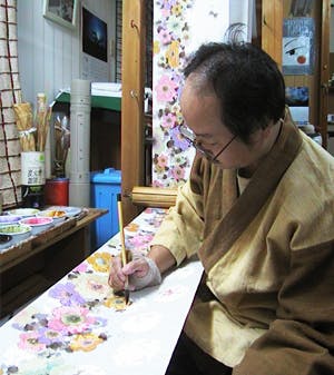 京都芸術大学の前身、京都芸術短期大学の1期生として卒業後、染色作家・田家鬼彩氏に師事。20年の修行後独立して河野染色工芸スタジオを設立