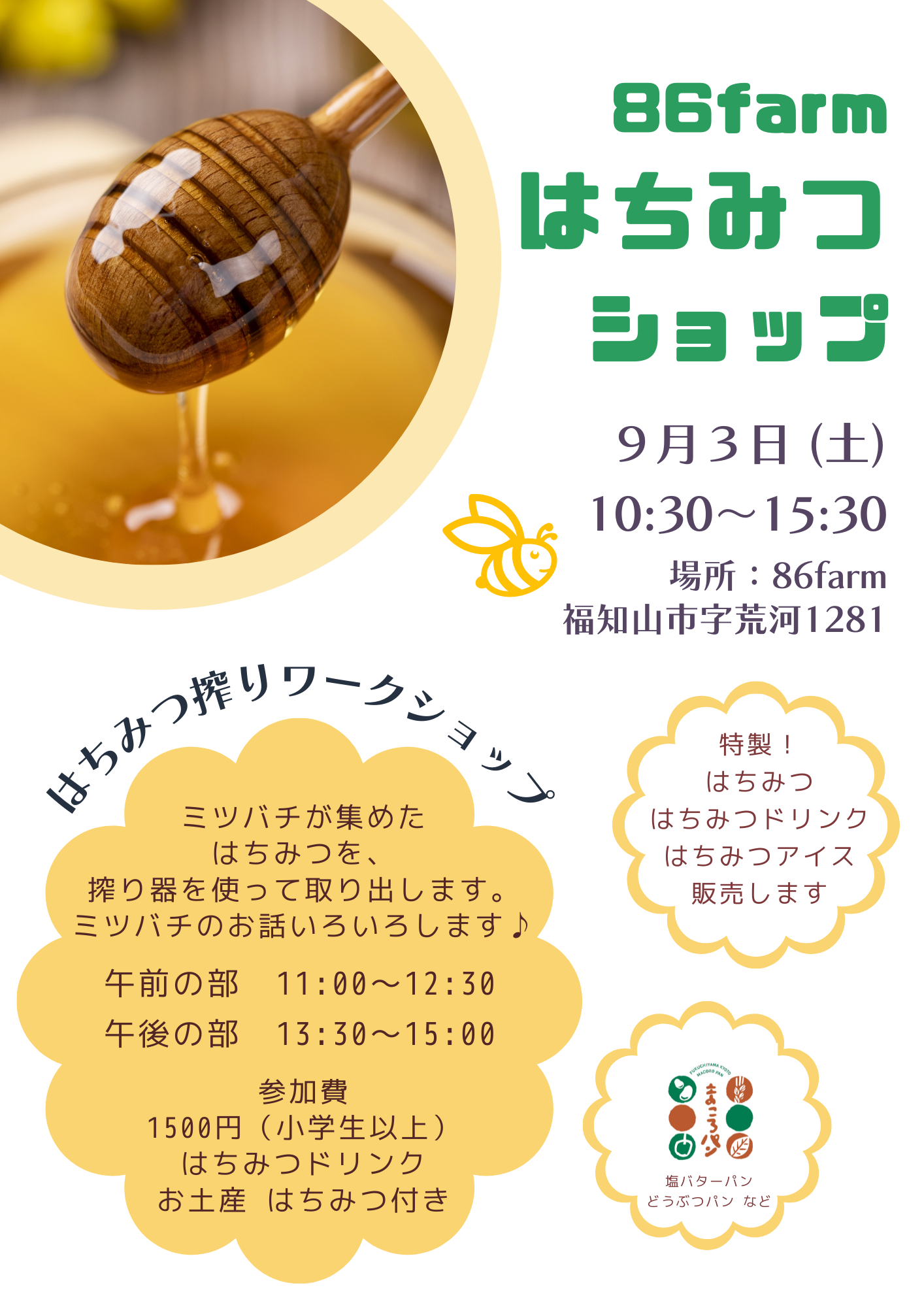 9月3日(土)に【86farmはちみつショップ】を開催いたします。