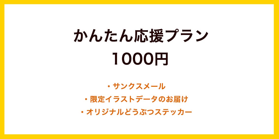 プロジェクト終了後にサンクスメール、かんたん応援プラン限定イラストデータ(PDF)(プチ応援プランのイラストとは異なります)、オリジナルどうぶつステッカーをお届けします!