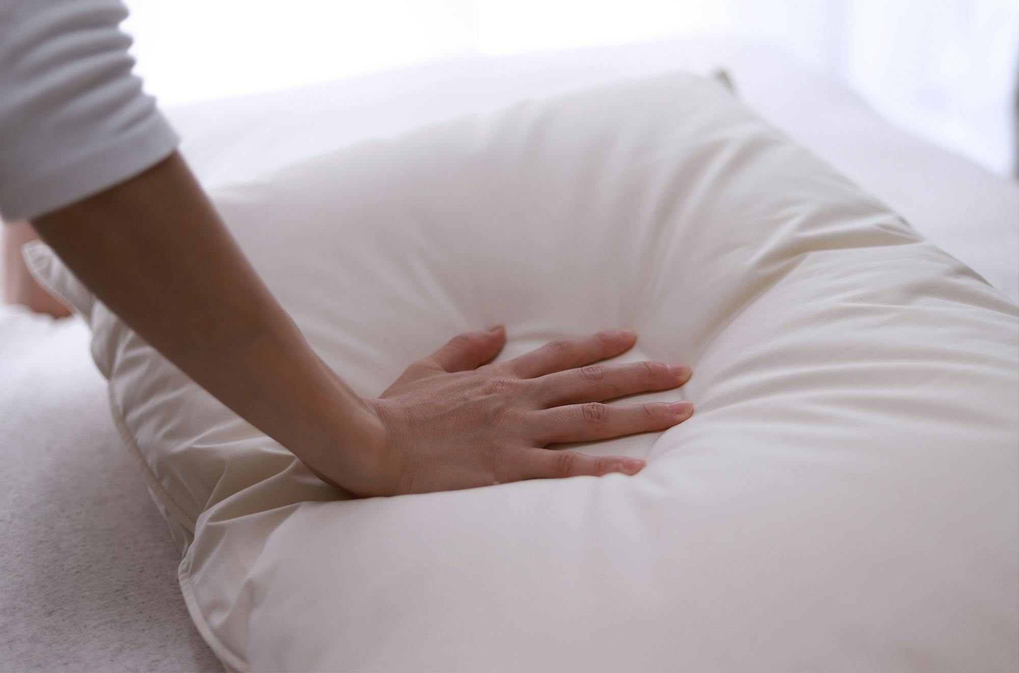 オーガニックピロー+はホテル枕のゆったり感に、機能性も兼ね備えた肌触りの良いふわふわのまくらです。頭が沈み込まないので寝返りしやすく目覚めもスッキリ!