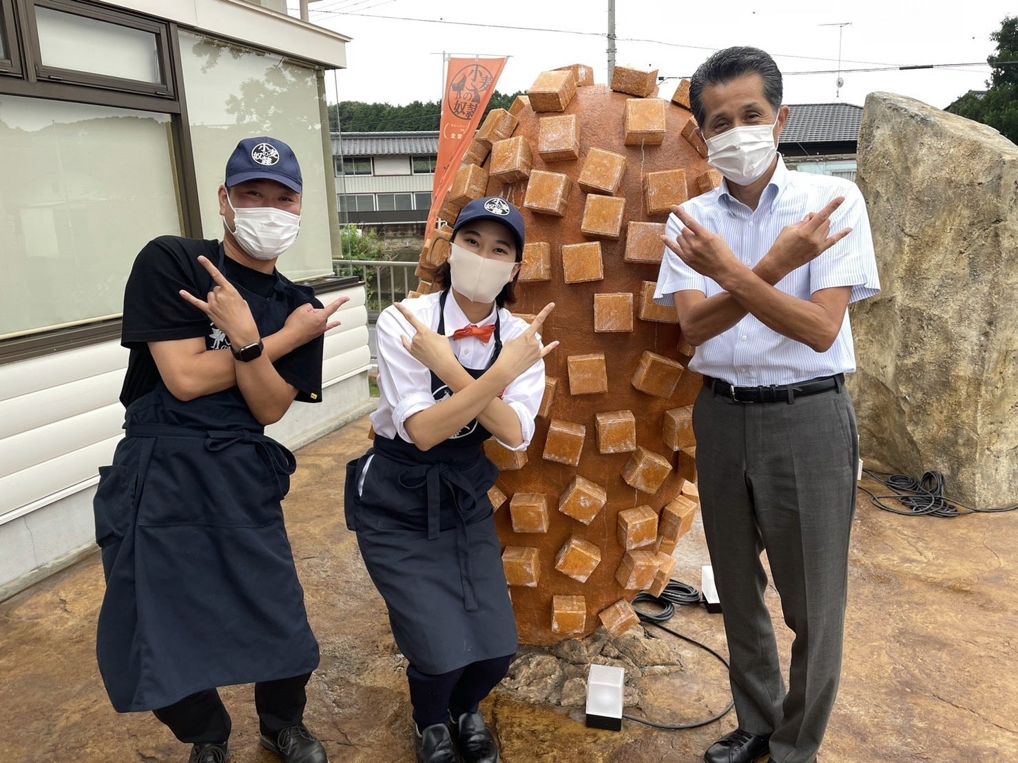 (右から、笠間市長 山口 伸樹 さん、小麦の奴隷の姫さま、オーナー村田さん)