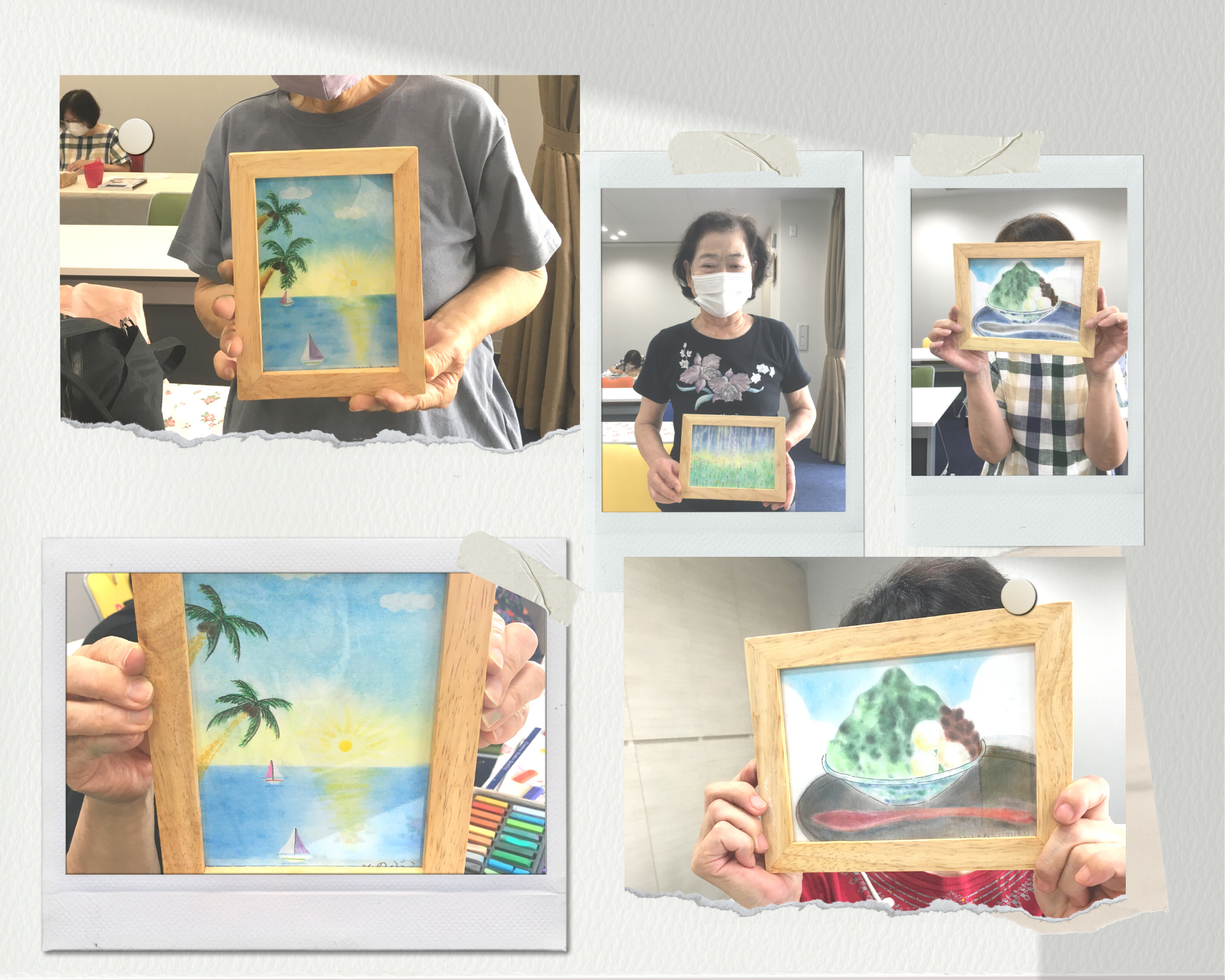思い出アート®︎講習の他にもパステル画講師として、老人クラブや小学校、幼稚園、子育て支援センターなどでも活躍しています。