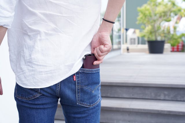 パンツのポケットに入れても膨らまないスマートさ。おしゃれの邪魔しないだけでなく