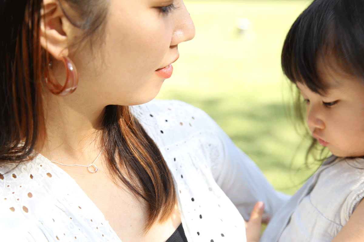 ベビーリングは、ママがネックレスとして大切に愛用し子供が大きくなった20歳の成人の日を迎えたその日に、元気に産まれてきてくれた時の喜びや、赤ちゃんが幸せに育ってくれますようにと、子どもの未来を願う気持ちを込めて、 大切に育ててきた両親の想いと願いを一緒に受け継いでいけるジュエリーとなります。
