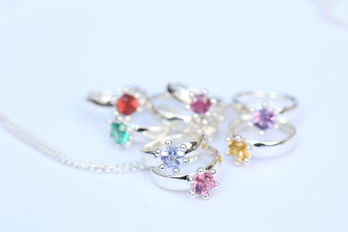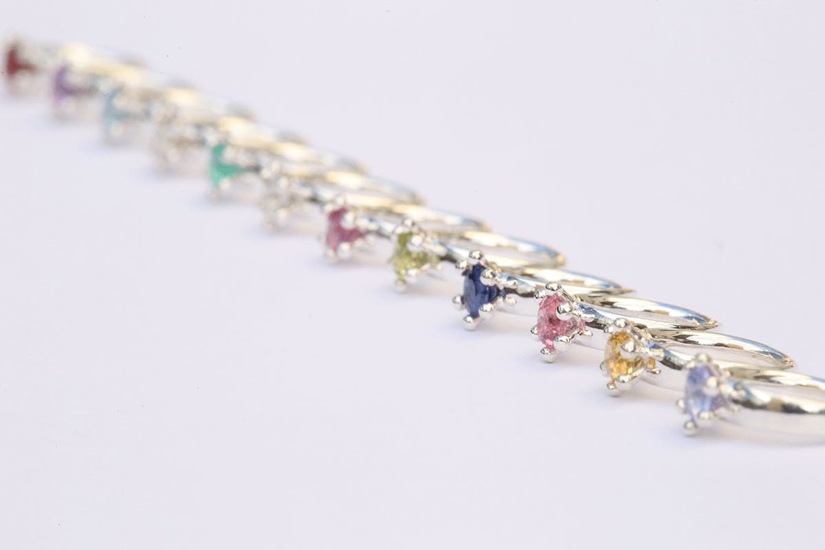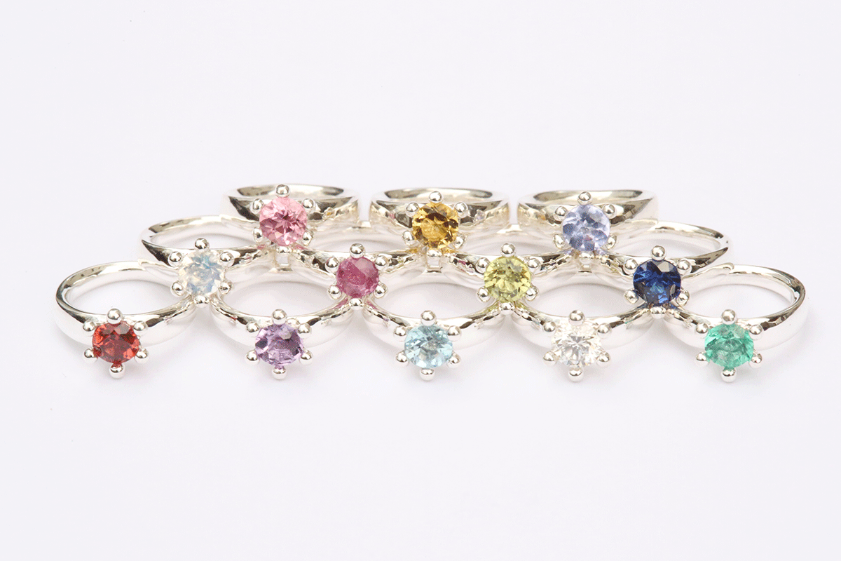 誕生月によっては高価な天然石となりますので、合成石もご用意しております。