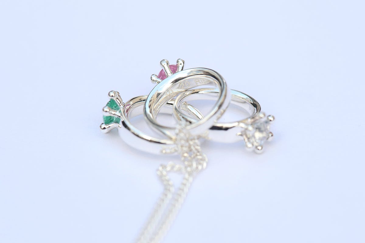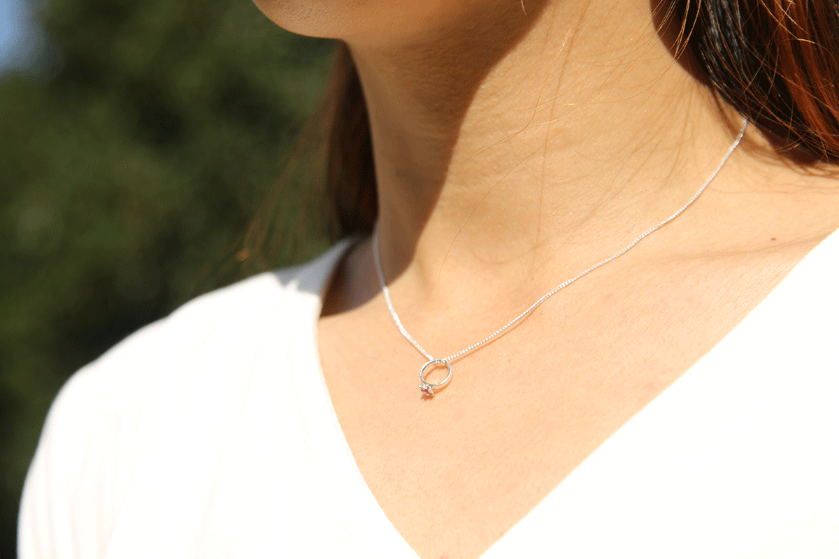 このリングはとても小さいため、実際に赤ちゃんの指には入りませんが、ネックレスとして着用いただくのに最適なサイズ感です。